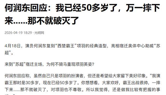 为什么这帮人能跟他这么久?看看何润东最近面对翻红的态度就知道了。4月18日的那场苏超联赛,何润东坐着战车出场,气势如虹。但很多人不知道,原本导演组设计的是让他骑马出场,那样视觉效果更炸裂。但何润东拒绝了。